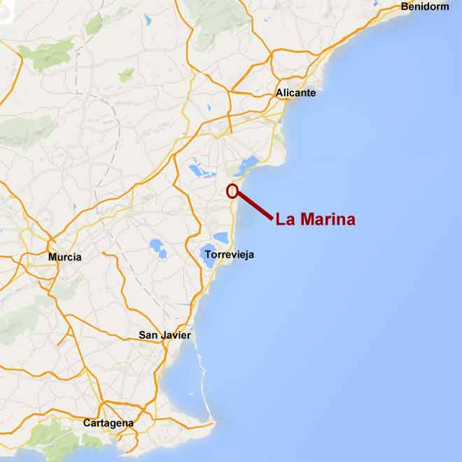 La Marina situated between Santa Pola to the north and Guardamar del Segura to the south really comprises of two parts, the older town which lies beach side of the N332 behind the sand dunes and around 500meters from the sea, and the new town which was built to accommodate the huge amount of tourists and new residents to the area in recent decades.